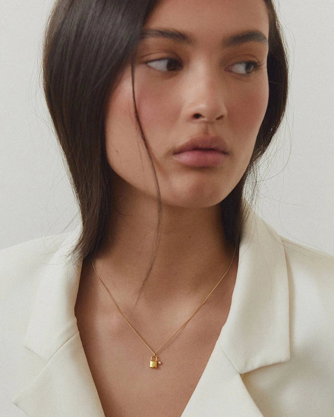 Lock Necklace with a lock-shaped charm and a chain of your choice. The charm is detachable, perfect for creating a personalized look.