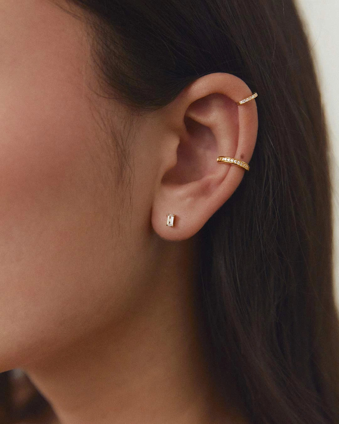 Lång stenlabret och baguettelabret säljs styckvis, päronörhängen säljs som ett par. Så här använder du labreten: För in den bakre delen genom örat och skruva fast framsidan.